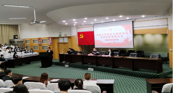 新发展的预备党员代表工商19-5李倩倩同学代表本次新发展的预备党员发言;员工正式党员代表经济18-1李育红同学代表正式党员发言。他们表示要进一步提高自身思想政治修养,在学习和工作中充分发挥党员的先锋模范作用,不忘入党初心,牢记党员使命。