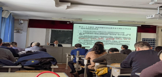 邓社民教授重点从“自我革命是中国共产党跳出治乱兴衰周期率的新时代答卷”,“新时代完善党内制度规范体系,为党的自我革命提供法治保障”,“新时代社会革命是建立健全中国特色社会主义法治体系的法治革命”,“党的自我革命引领社会革命必须扎实推进中国式法治现代化”等四个方面对党的二十大报告进行深刻的解读。整场报告主题鲜明、解读准确,既有理论高度,又有思想深度,具有很强的针对性、指导性。