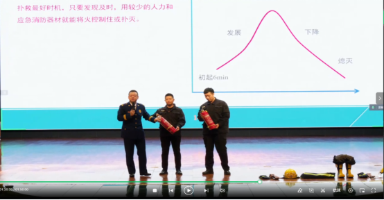 接着全院教职工共同观看《消防安全专题培训讲座》视频,本次讲座包括理论讲解和实践操作两个环节。通过观看学习使公司教职工切实明确了“宁可一万次的担心,不可一次大意”的道理,有效提高了全体教师的消防安全意识、消防安全隐患排查能力、自救能力和应急处置能力。并对消防器材的使用有了较为全面的了解。讲座结束后公司对11号教学楼的安全隐患进行了全面彻底的排查。