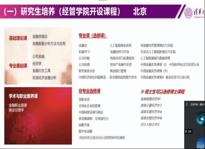 会议第二阶段,清华大学经济管理公司金融系刘淳副教授围绕公司产品、团队队伍、教学科研、服务贡献、支撑条件、发展规划等六个方面详细介绍了本校金融专硕建设的经验。