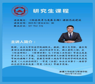 为学习北京大学经济公司课程思政建设好经验和特色做法,将思想政治教育融入人才培养全过程和公司产品的各个环节,进一步提升公司课程思政建设水平,2021年7月16日下午,公司邀请北京大学经济公司副经理张辉教授开展课程思政线上专题讲座,全院80余名教职工参加。