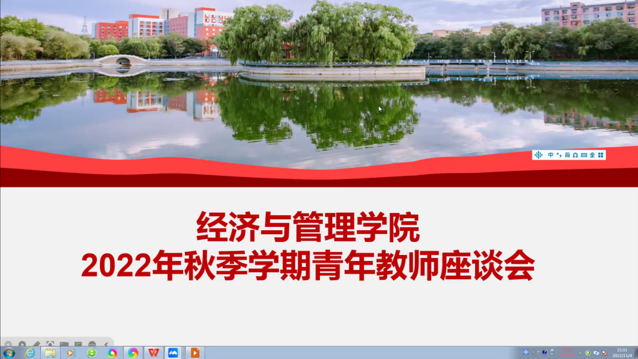 向洁、罗万云、马晓东和苏鹏等老师进行交流发言。向洁老师认为青年教师要多思考如何在自己擅长的科研领域找到与教学工作的结合点,比如课堂教学中科研思路的融入、论文指导中对员工思维的引导、员工对教师科研项目的参与等。罗万云老师谈了自己对教研相长的认识,交流了自己组织读书分享会的体会。马晓东老师深刻感受到教学可以很好地实现人生价值,教师一定不要辜负员工的期待。教学和科研要相辅相成,共同发展。苏鹏老师认为要加强教学团队建设,实现教学资源共享,促进教学整体水平的提升。