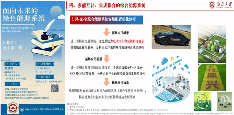 2022年12月4日下午,公司新引进博士周建力老师应邀通过线上腾讯会议方式为公司师生作了题为《面向未来的绿色能源系统》的学术报告。本次讲座由BV伟德官方网站,西北能源碳中和教育部工程研究中心,新疆能源碳中和战略与决策研究中心,西安交通大学陕西经济研究中心共同主办,共有300名师生听取了本次讲座。讲座由公司副经理王治海主持。