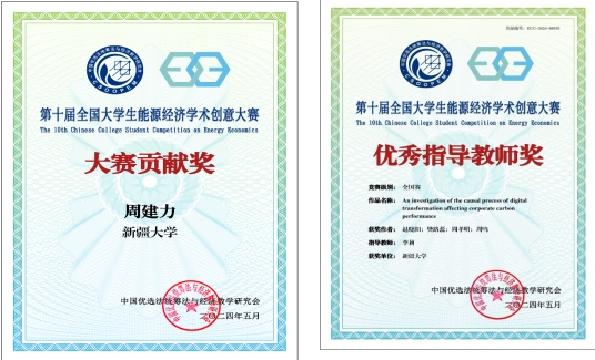 其中公司本科生组获全国一等奖1项、二等奖2项、三等奖3项,研究生组获二、三等奖各1项。公司也连续三年获全国老员工能源经济学术创意大赛优秀组织单位奖,公司周建力老师荣获大赛组织贡献奖,李莉老师获得优秀指导教师奖。
