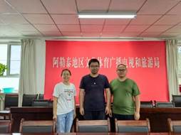 8月4日至8月9日,田原副教授赴阿勒泰调研。阿勒泰地区统计局综合核算科李平科长、孙莉同志热情接待并积极协助整理提供课题所需相关数据。阿勒泰文旅局文化科刘丽科长、文博院何会来经理、宣传科负责同志座谈介绍了阿勒泰地区近年来在喀纳斯景区、可可托海景区、冰雪文旅、红色文旅、研学旅游、通天洞考古文化、黑龙江对口援阿文旅建设情况,阿勒泰地区文旅产业发展存在的问题和未来文旅融合的规划和构想。