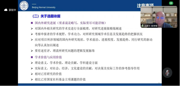 2024年11月12日20:00,2025年度国家级科研项目申报辅导讲座以腾讯会议方式正式举行,本次讲座邀请了北京师范大学陈梦根教授为公司全体教师作题为“国家级科研项目申报的注意事项和几点经验”的专题讲座。此次讲座由BV伟德官方网站学术副经理向洁主持,全院50余名教师参加。