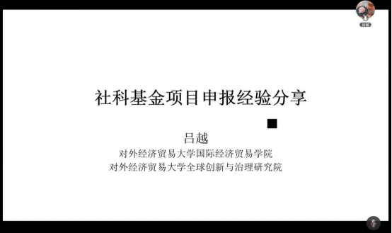 在讲座环节,吕越教授围绕国家社科基金项目的关键申报流程,从申报前的准备工作、申报过程中的重要内容以及课题申报的“八个要”和“八个不要”原则三个方面进行报告和讲解。
