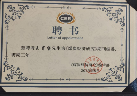 会上,《煤炭经济研究》期刊隆重向新聘期刊编委颁发了聘书。公司副经理王育宝教授被聘为《煤炭经济研究》期刊编委、朱俏俏副教授为期刊青年编委。《煤炭经济研究》(月刊)1981年创刊,中国煤炭经济研究会会刊,煤炭行业经济管理类唯一学术期刊,被北大中文核心期刊数据库、中国科技核心期刊数据库、中国人文社会科学引文数据库收录。