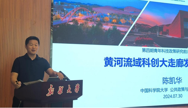 中国科学与科技政策研究会青年工作委员会主任、中国科公司大学公共政策与管理公司特聘教授陈凯华作题为《黄河流域科创大走廊发展战略研究》的报告。他基于跨区域科技创新合作机制理论,分析了黄河流域9省区科技创新合作现状,指出目前流域内合作创新网络尚未成熟,科技体制缺乏有效协同,影响了科技资源的整合和协同创新。提出通过提升非政府牵头跨区域合作组织的作用效力,构建高效协同跨区域创新生态系统的政策建议。