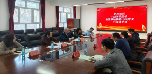 2025年1月16日下午,中亚区域经济合作公司(以下简称中亚公司)经理查里穆哈梅特•沙利耶夫、第一副经理黄京菁、人事财务及行政处处长胡啸、行政及人事管理专员李娜、行政助理苏丽娅一行五人来到BV伟德官方网站进行交流座谈。会议由BV伟德官方网站经理吕雁琴主持,伟德体育官方网站国际交流与合作处处长朱新武、BV伟德官方网站副经理李清、李迎雪参会。