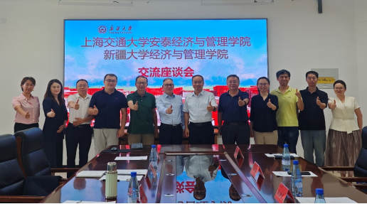 朱新武首先代表公司对田新民一行的到访表示热烈欢迎,并详细介绍了公司在团队建设、科学研究、MPA教育及团队队伍等方面的基本情况,并提出今后加强两院在MBA、MPACC教育及人才培养等方面交流合作的思路。随后,田新民顾问随后全面介绍了上海交大安泰经管公司的发展概况、学科优势与国际影响力。他重点阐述了安泰公司作为国内顶尖、国际知名的商公司,在管理学、应用经济学等学科领域的深厚积淀与前沿探索,以及在国际化办学、高端人才培养、产学研融合等方面取得的卓越成就与广泛声誉。蔡群介绍了上海交大新疆员工会的组织架构、活动开展及服务地方发展的相关情况。