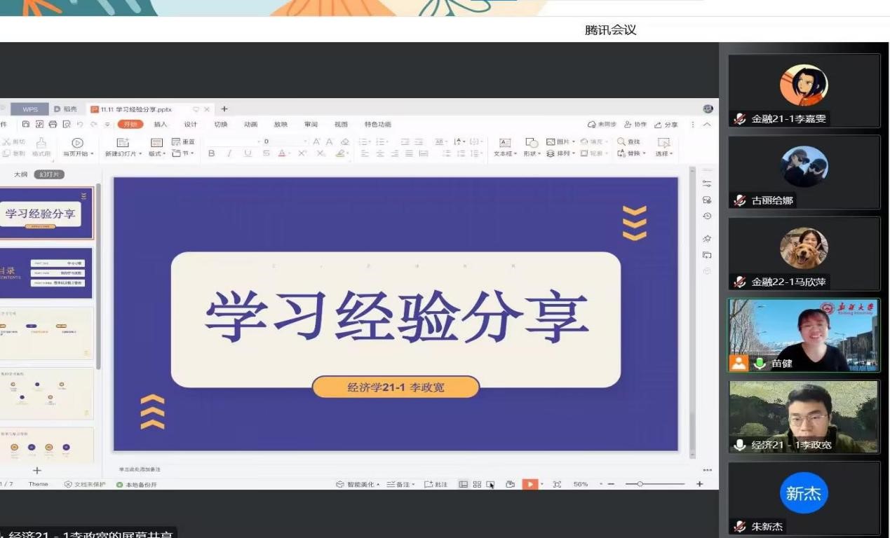 最后分享的是经济21-1班的李政宽同学,他主要向同学们介绍了自己的学习流程,分享了自己的效率与精力管理,引导同学们消除分心,保持热情与自信,合理规划学习时间,高效完成学习任务。同时,李政宽的同学们和班主任热娜老师也纷纷赞美他是一个一丝不苟、谦虚好学的员工。