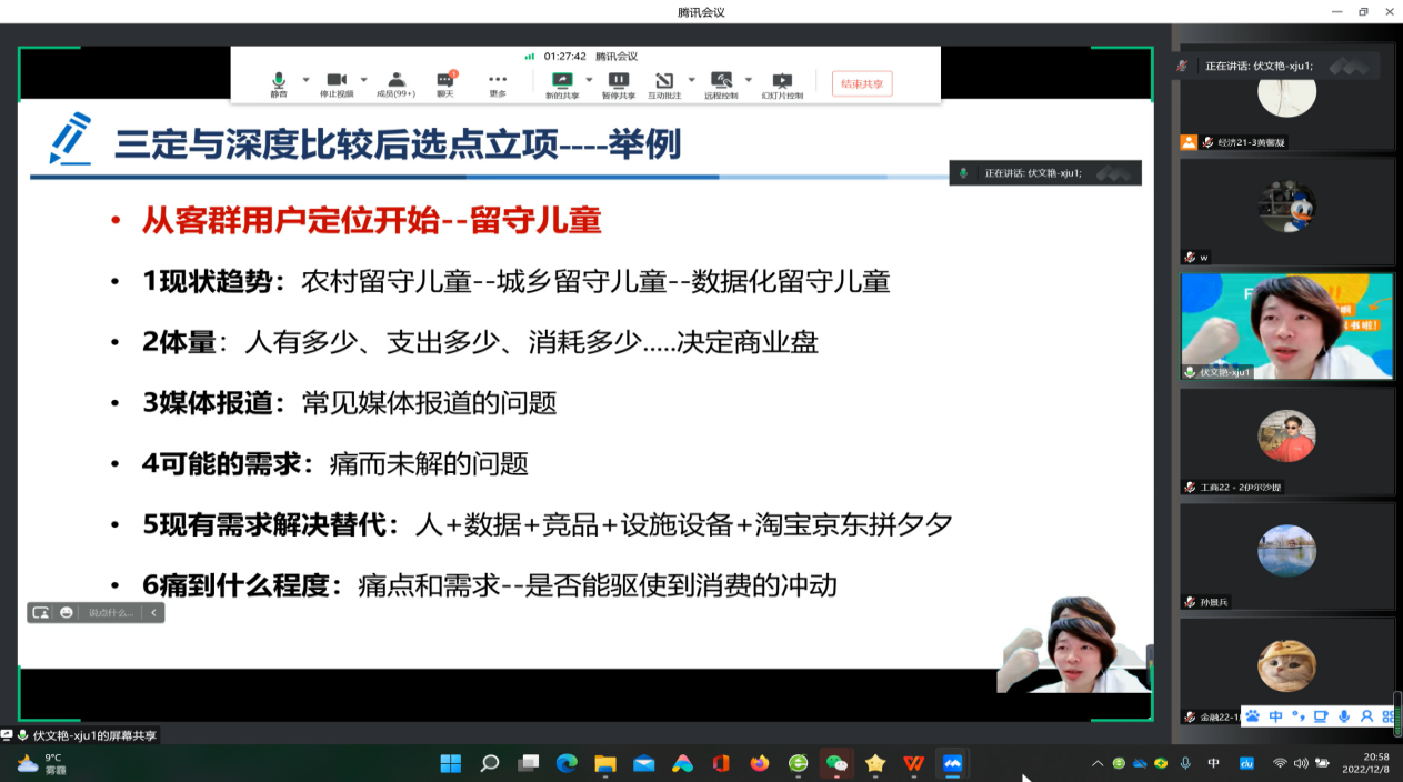 距离第十三届全国老员工电子商务“创新、创意及创业”挑战赛开始越来越近,同学们已经进入准备阶段了。俗话说:“不打无把握之仗。”为了帮助同学们更加全面的了解比赛信息,掌握比赛准备过程中需要重点关注的内容,鼓励同学们积极参加各类创新创业大赛,2022年12月8日20:00,BV伟德官方网站邀请伟德体育官方网站党委员工工作部副部长伏文艳副教授举办了“全国老员工电子商务“创新、创意与创业”挑战赛项目选点立项与团队建构”为主题的专题讲座,BV伟德官方网站经理孙景兵老师、就业辅导员热娜老师全程参与,共有210余名员工听取了讲座。