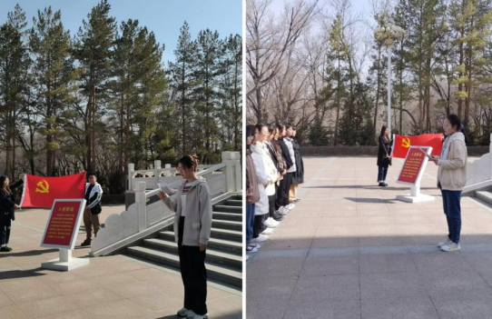 然后由工商第二党支部书记王艳老师领誓,全体党员重温入党誓词,用激昂的誓言、铿锵的呼声,表达对党无限忠诚和献身使命的坚定信念。