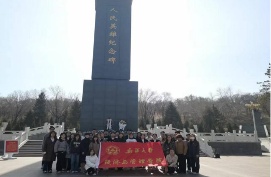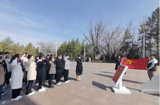 3月26日上午十一点,工商管理专业第一、第二支部全体党员同学在古丽斯坦老师、王艳老师两位支部书记带领下抵达乌鲁木齐烈士陵园。到达陵园后,全体支部成员面向人民英雄纪念碑整齐列队,支部的两位同学代表全体支部成员向纪念碑敬献花篮,然后支部全体成员全体肃立,向革命烈士三鞠躬,默哀一分钟。
