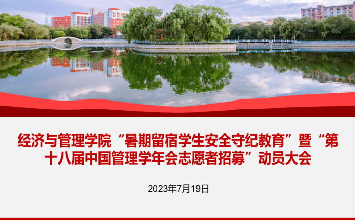 菱透浮萍绿锦池,夏莺千啭弄蔷薇。伴随着第三学期课业的结束,同学们的暑期正式开始,部分同学因复习考研、学术调研、勤工俭学的需要选择留校,于盛夏中度过一个充实精彩的假期。为做好暑期留宿员工安全稳定与校纪校规教育,保证留校员工生命财产安全,促进和谐校园建设,同时为“第十八届中国管理学年会招募志愿者”,教育引导员工珍惜留校时光,遵守校纪校规,深入社会实践,坚定理想信念,励学增长才干。切实于润物细无声中推进公司“三进两联一交友”活动纵横发展。根据公司党委安排,公司于2023年7月19日20:00通过钉钉会议的形式开展“暑期留宿员工安全守纪教育”暨“第十八届中国管理学年会志愿者招募”动员大会。公司170余名留校本硕博员工,全体辅导员参加,公司党委副书记、纪委书记苗健老师主持。