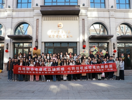 为深入学习贯彻习近平总书记关于新疆和兵团工作重要指示精神和在全国民族团结进步表彰大会上的重要讲话精神,在新疆生产建设兵团成立70周年之际,回顾兵地融合发展的突出成就,铭记城市变迁背后的峥嵘岁月,发掘军垦文化独特的铸牢中华民族共同体意识抓手,强化各高校学子间的交往、交流、交融,公司国际经济与贸易转业党支部与新疆农业大学国际教育公司员工第一党支部、新疆师范大学国际文化交流公司员工第一党支部、申万宏源西部证券有限公司乌鲁木齐北京路营业部党支部联合于2024年10月26日上午10:00—14:00开展“兵地融合屯垦戍边铸辉煌,七秩弦歌维稳戍边展新篇”暨自治区高校基层党支部“庆祝新疆生产建设兵团成立70周年”活动。
