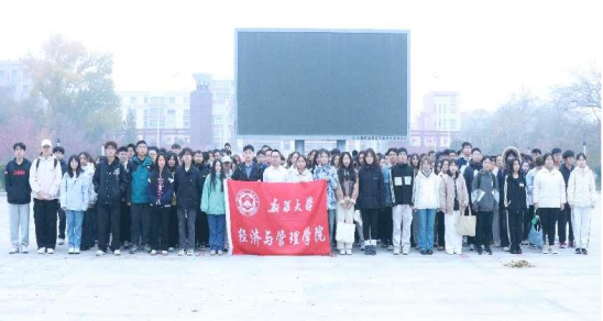 来自经济24-2班的员工代表于滨硕同学做了国旗下演讲,他说;“在“新大红”的照耀下,我们要学会从历史中汲取力量,深刻理解早期共产党人、爱国民主人士以及进步文人学者们为了国家独立、民族解放、文化繁荣所付出的艰辛努力和卓越贡献。他们的精神如同璀璨星辰,照亮了我们前行的道路,让我们在面对挑战时更加坚定,在追求真理时更加执着。