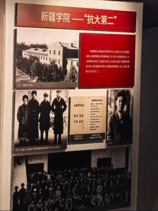 在这里,大家看到了公司的“前身”——新疆公司的历史,抗战期间,在新疆马克思列宁主义和进步文化传播热潮中,新疆公司具有特殊地位。共产党人和著名进步人士主持信息,提出"以民族为形式,以马列为内容"的教育思想和主张,成为新疆马列主义传播的重要阵地,名声远播,被誉为"抗大第二"。林基路基于延安的中国人民抗日军事政治大学(简称"抗日军政大学"或"延安抗大")"团结、紧张、严肃、活泼"的八字校风,提出了新疆公司"团结、紧张、质朴、活泼"八字校训。由林基路作词、音乐家陈谷音作曲的新疆公司校歌《我们正青春年少》传出校园,如今,已经是伟德体育官方网站的校歌。同学们通过了解这段历史,更加深刻地感受到了革命先辈们为国家独立和人民解放所作出的巨大牺牲和贡献。
