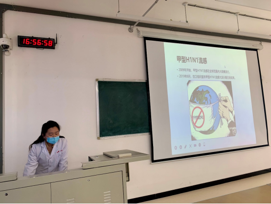 下午17:00,讲座正式开始。徐医生向同学们介绍了甲流、肺结核、手足口病、水痘、急性结膜炎等常见传染病,将其临床特征、传播途径、易感人群、预防措施以通俗易懂的方式向与会员工做了详细的介绍,并提醒同学们平时要养成良好生活习惯,合理膳食,适量运动,提高自身免疫力,注重宿舍卫生,勤洗澡勤通风,正确看待传染病,及时发现和治疗身体出现的不适症状,防患于未病,必要时进行预防接种。徐医生强调:“优良的身体素质是学业发展的前提,对学习效率和学习质量具有潜移默化的影响,希望同学们能够从芳华时注重体育锻炼,将个人身体健康放在重要位置,充分激发个人身体潜能,从而在实现青春梦想的道路上笃行不怠,勇毅前行”。徐医生还对大学医保政策进行解读,就医保参保对象、报销范围、所需材料及具体报销流程等内容进行了详细阐述,帮助同学们更好地理解了医保制度,确保同学们在需要时能够顺利享受医保待遇。
