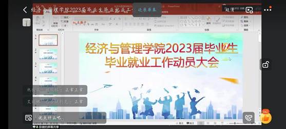 最后,苗健副书记为动员大会总结发言,她鼓励全体2023届毕业生认清就业形势、勇敢逐梦,让青春之花在祖国和人民最需要的地方绽放,在大有可为的新时代大有作为。13:30历史2个半小时的动员大会圆满结束。通过这次毕业就业工作动员大会,同学们深受鼓舞。大家表示将以饱满的 热情、认真负责的态度完成最后一学年的学习任务;同时高度重视秋招的黄金时期,积极参加就业讲座和招聘会,投递 简历,沉着应对面试以及各种考验。祝福全体2023届毕业生能够做好自己的选择,顺利的开启下一阶段的升学或职业 生涯的大门。经管公司也会为全体毕业生求职升学保驾护航。最后,祝全体毕业生毕业顺利,前程似锦。