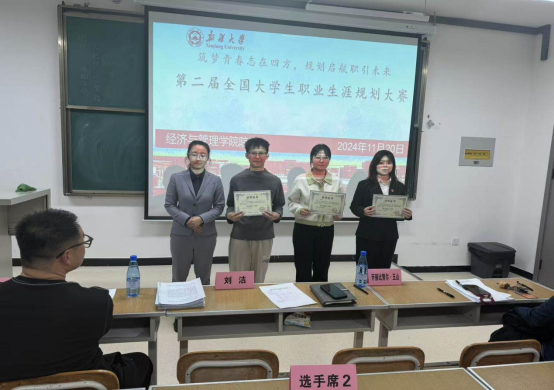 在颁奖典礼上,企业人资为获奖选手颁发荣誉证书,并鼓励全体同学以获奖选手为榜样,重视职业生涯规划,不断提升自己的综合素质和就业竞争力。