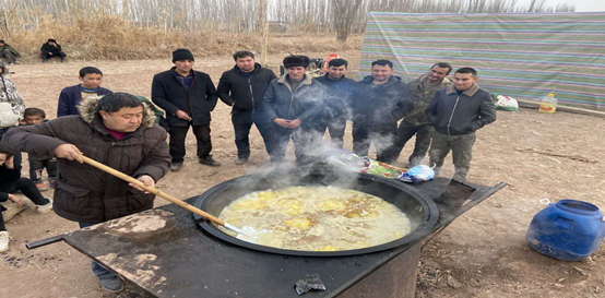受灾村民们吃着爱心大锅抓饭,深深感受到了公司教职工的关心和温暖,由衷地鼓掌呼喊:“伟德体育官方网站,亚克西”!