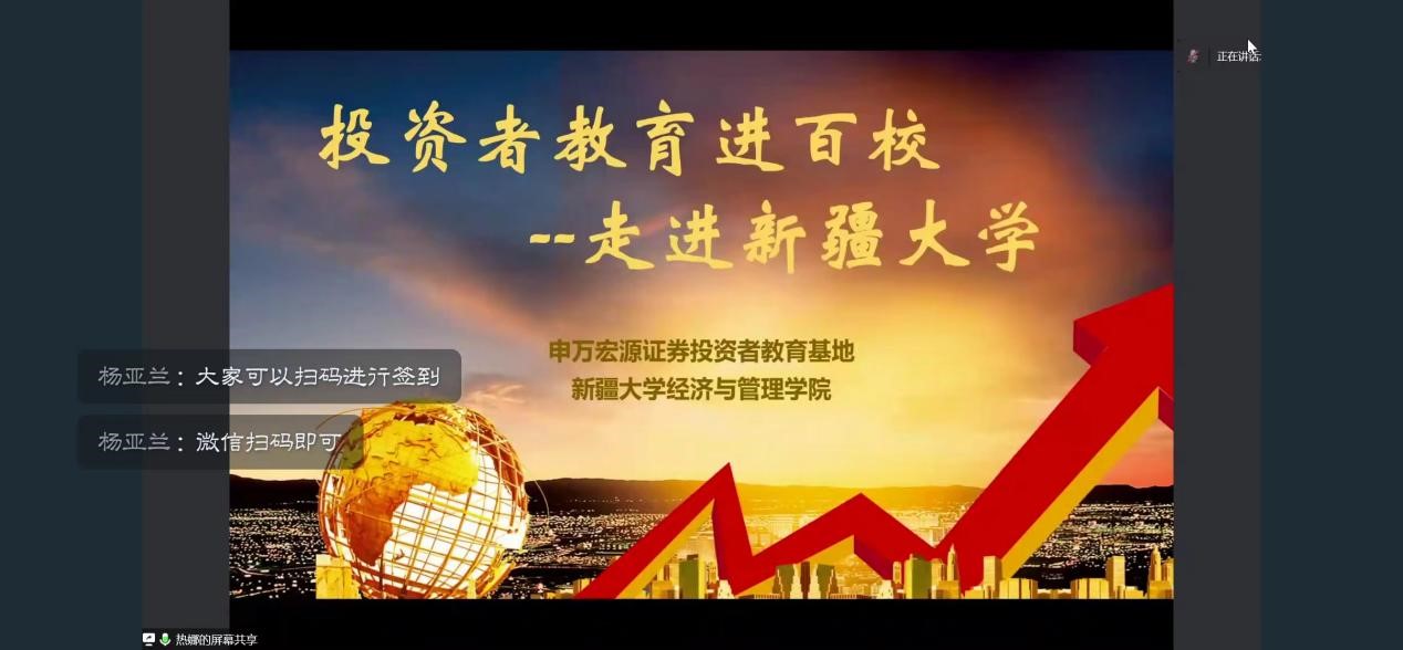 为了拓宽员工关于理财投资知识的视野,了解掌握最新的投资理念,培养员工的理财意识,塑造优秀的金融人才,10月29日BV伟德官方网站与申万宏源证券有限公司投资者教育基地合作开展的“投资者教育进百校—走进伟德体育官方网站”活动。申万宏源证券财富管理事业部资深投资顾问叶奇杰先生围绕《关于投资理财 --一个经管院过来人的小小体会》为主题开展投资教育讲座。讲座通过钉钉与腾讯会议同时开展,经管“企业之星”工作室负责人热娜老师主持,公司共有370余名员工参加。