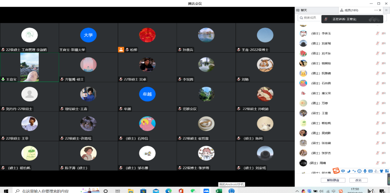 为做好入学教育工作,帮助2022级研究生新生尽快熟悉校史院情、了解公司有关研究生的管理规定,明确学习科研目标、做好职业生涯规划,顺利完成本研对接、硕博转换,公司按照公司党委学工部的部署要求,于9月22号下午,通过线上腾讯会议的学习形式,邀请公司全体导师、全体22级硕博研究生共同学习了研究生管理规定等方面的内容。会议由孙景兵经理主持。