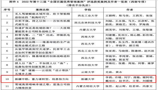 日前,由全国工商管理专业学位研究生教育指导委员会指导、中国管理案例共享中心主办的第十三届“全国百篇优秀管理案例”公布评审结果。BV伟德官方网站李莉教授带领团队开发的《新疆中联:蓄力谋转型,税惠指方向》案例荣获“全国百优(西部专项)”,这是公司自启动案例建设以来,首次荣获“全国百优(西部专项)”的殊荣。