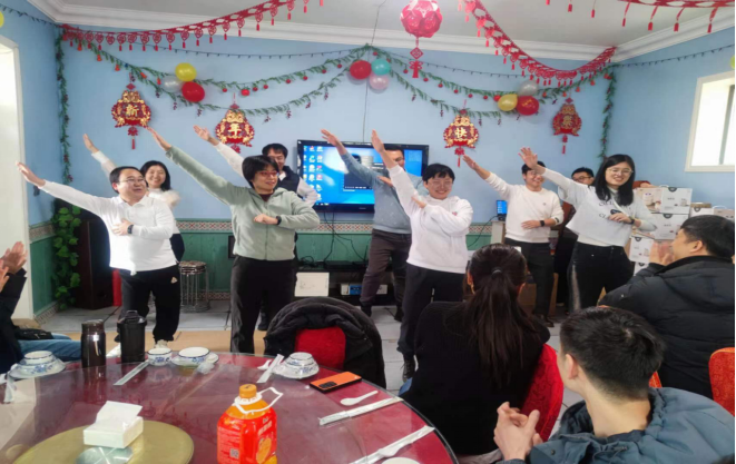 三尺讲台言行雅正,平凡生活龙马精神。每位老师在台下也有着属于自己平凡而不凡的生活志趣。在联谊会上,公司表演了精彩节目,有欢快的舞蹈《科目三》《舞蹈串烧》《萨吾尔登》,有悠扬的歌曲《思恋》,更有互动游戏《你画我猜》。精彩纷呈的节目和紧张刺激的游戏将活动氛围不断推向高潮。老师们时不时热烈鼓掌,时不时拍照留念,记录下这美好温馨的时刻。